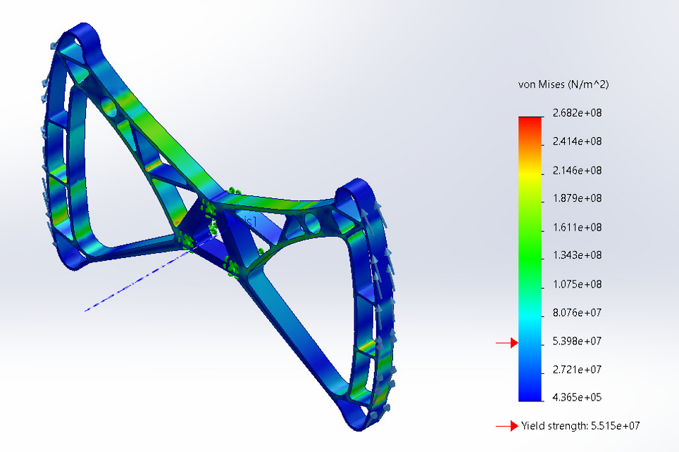 shown in the simulation images below, helped us identify regions where the wheel was overbuilt and carrying unnecessary